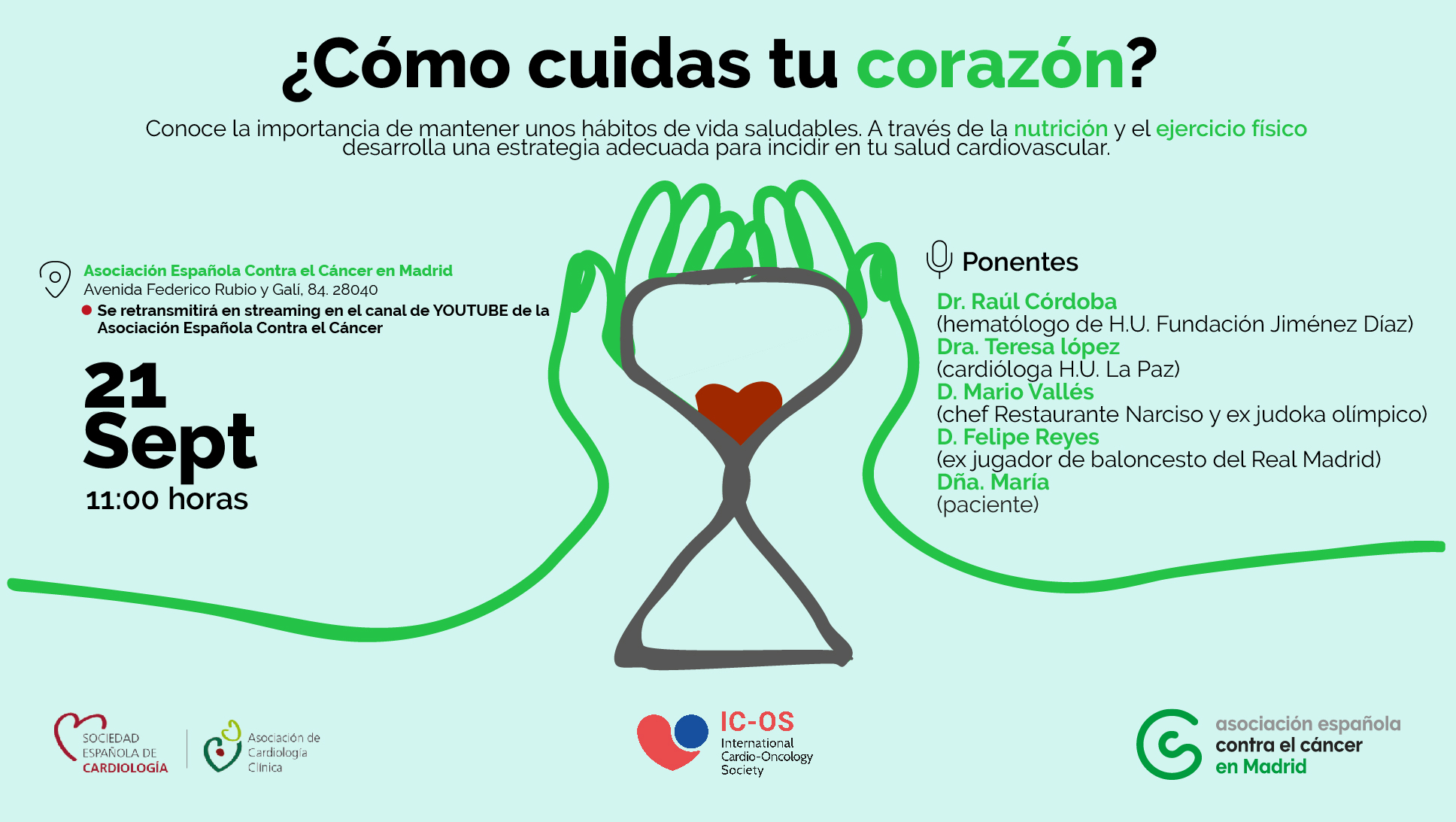 El Departamento de Programas y Servicios de la Asociación Española Contra el Cáncer en Madrid, que dirige Ana González, en colaboración con la International Cardio-Oncology Society (IC-OS), Sociedad Española de Cardiología y la Asociación de Cardiología Clínica, ha organizado este jueves, 21 de septiembre, la jornada titulada ‘¿Cómo cuidas tu corazón?’, con el fin de conocer la importancia de mantener unos hábitos de vida saludables en la población en general y oncológica en particular.