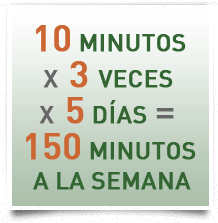 - Realizando tan solo 10 minutos de actividad física, 3 veces al día por 5 días ¡ya llegas a los 150 minutos recomendados! ¿A que suena bien? Esto es totalmente realizable, considerando que pasamos 4 veces ese tiempo viendo el móvil, o 8 veces ese tiempo viendo la tele.